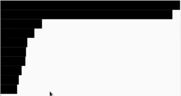 这样更新视图,就可以看到已经有图像出来了。但是只能看到一个黑色的长方形。因为目前图形并不能反映任何数据,只是单纯的固定'width'的长方形。为此,需要用上数据,但是因为数据可能很大或者很小,为了让其能够正好显示的视图中,需要使用到比例尺。