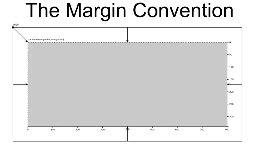 下图所示是margin的布局示意图,因为直接按照svg的height和width撑满画布将导致没有多余的位置放置坐标轴等,所以这里使用一个margin来对布局重新规划。