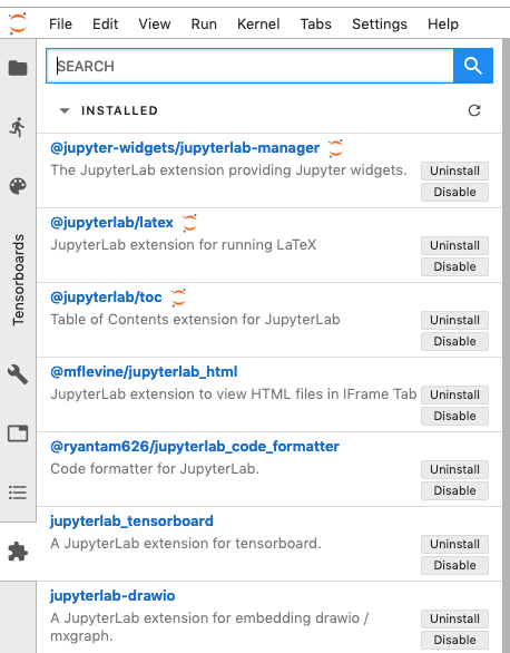 JupyterLab目前的插件也算丰富,我目前使用的插件如下: