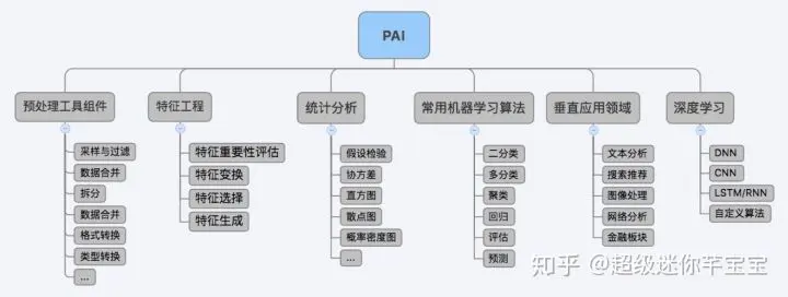 结合上一节介绍,PAI为机器学习提供了高效的解决方案,其中主要可分为PAI-Studio、PAI-EAS、PAI-DSW三个部分,PAI-Studio提供了可视化的机器学习组件,简单拖拽及配置即可构造机器学习解决方案,生成的算法模型可在PAI-EAS部署,提供在线预测服务。PAI-DSW则为开发者提供了整套的云端深度学习开发环境,算法开发者可以非常方便的在该环境进行开发实战。