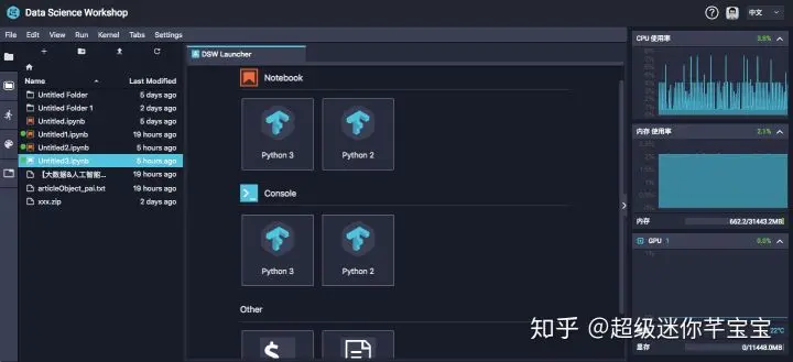 另外一种深度学习解决方案是利用PAI-DSW(Data science workshop),该方案是专门为算法开发者提供的云端深度学习开发环境,详情及使用可参考使用文档。