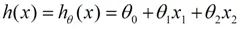,θ在这儿称为参数,在这的意思是调整feature中每个分量的影响力。如果我们令X0 = 1,就可以用向量的方式来表示了: