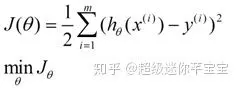 , 我们也需要一个机制去评估我们θ是否比较好,所以说需要对我们做出的h函数进行评估,一般这个函数称为损失函数(loss function)或者错误函数(error function),描述h函数不好的程度,在下面,我们称这个函数为J函数,我们要做的就是调整θ以使得J(θ)取得最小值。如下所示: