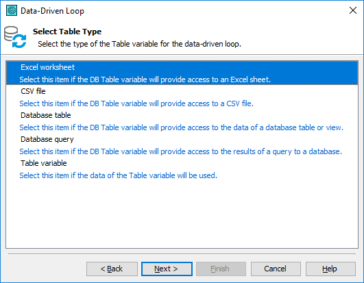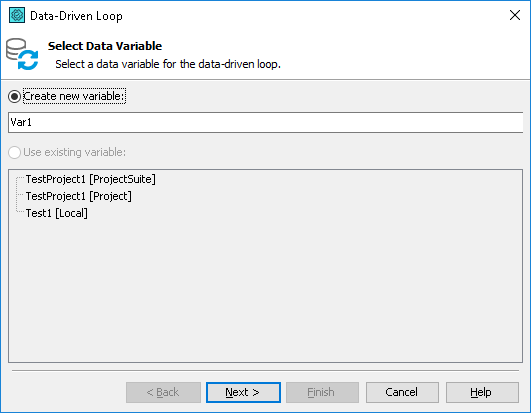 - 右键单击所选操作,然后从随后的上下文菜单中选择“生成数据循环”。将会出现“数据驱动循环”向导。