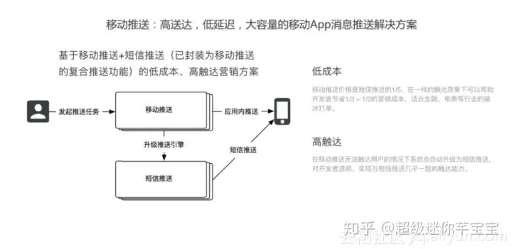 除了传统PaaS层推送通道之外还会进一步开放复合推送的能力,基于移动推送+短信推送组合面向客户提供更弹性的触达终端用户的解决方案。在复合推送的模型下,优先通过应用链的消息推送进行客户触达,在消息推送没有办法触达客户的情况下就通过短信推送进行补偿。一方面可以利用短信推送的高触达率保障营销任务的触达效果,另外一方面也可以利用消息推送本身的低成本进一步地降低营销任务背后的成本开销。