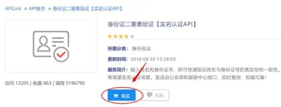 下面以身份证二要素实名认证为例介绍操作步骤。