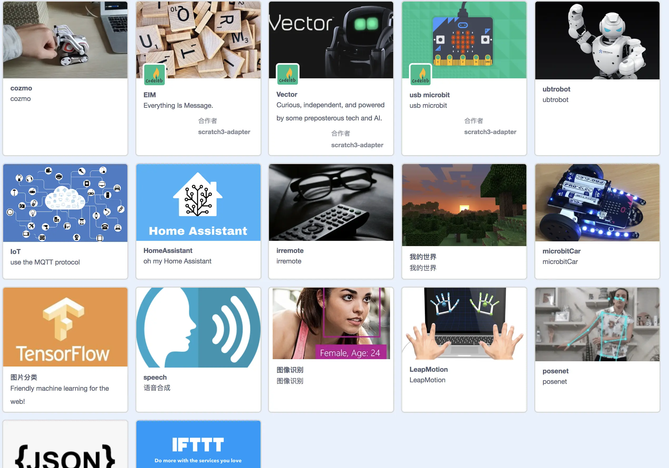 这是Scratch3 Lab目前支持的部分插件截图 。