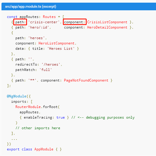 每个 Route 都会把一个 URL 的 path 映射到一个组件。 注意,path 不能以斜杠(/)开头。 路由器会为解析和构建最终的 URL,这样当你在应用的多个视图之间导航时,可以任意使用相对路径和绝对路径。
