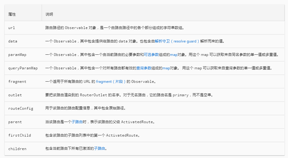 在导航时的每个生命周期成功完成时,路由器会构建出一个 ActivatedRoute 组成的树,它表示路由器的当前状态。