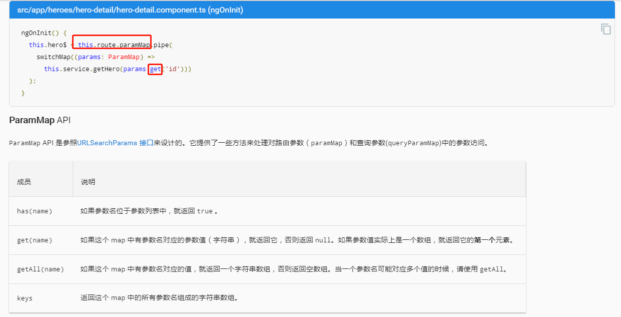 let id = this.route.snapshot.paramMap.get('id'); //route.snapshot 提供了路由参数的初始值。 -