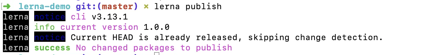 以上是lerna的常规创建发布流程,默认模式是Fixed/Locked mode (固定模式)。