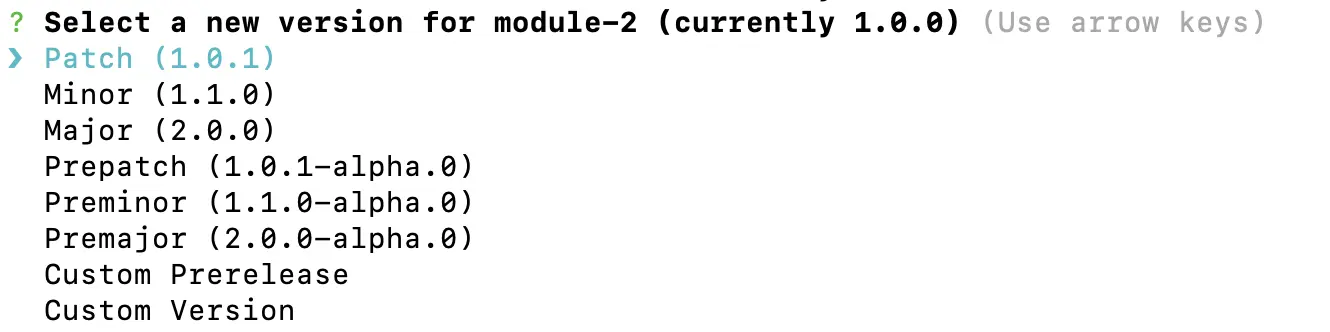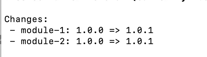 重启一个lerna项目,这里不重复了,别忘了指定模式。 我们新建了module-1和module-2的包,并且已经发布成功了,OK,接下来我们修改module-2,依然是新增index.js,然后提发布