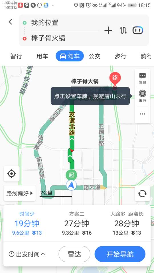 因为现在全国限行相当流行,开始导航后限行增加提示重量,同时语音提示用户当前导航的路况信息和路程时间等。