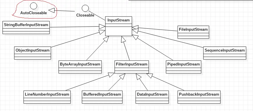 字节输入流(12个),图中用红圈圈住的是java.lang包中的。