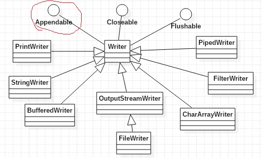 字符输出流(9个),图中用红圈圈住的是java.lang包中的。