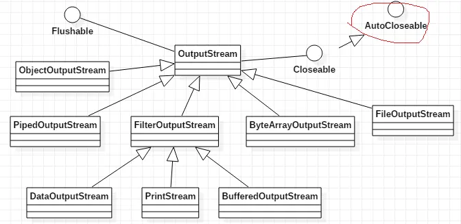 字节输出流(9个),图中用红圈圈住的是java.lang包中的。