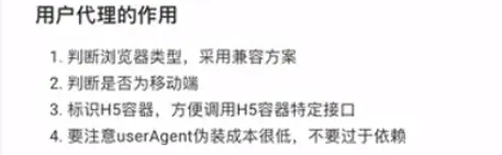 - 平常的时候做微信,要判断一下是微信调用的,我们可以通过一个简单的方法,用user-Agent去标识,这个东西是来源于微信的,我们发出来的是微信的界面,和网页的界面有些许不同,可能要带一些微信相关的js,平常做微信开发,同一个页面既可以放到网页里又可以放到微信里,这时候我们需要用一些用户代理,由微信的客户端发给微信的服务器端