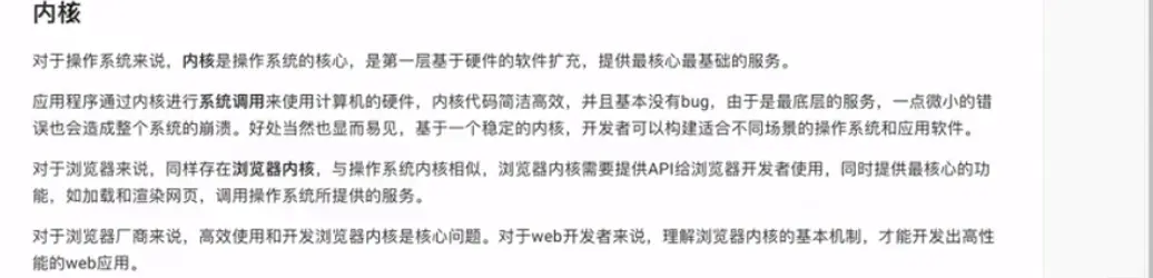 - 2.操作系统运行的时候有两个态:一个是内核态一个是用户态,打开文件或者播放声音,或者在显示屏上输出一个字符,其实都是调用操作系统内核里面的东西;如果我们计算一个1+2,实际上我们是跑在用户态上;操作系统是如何运行的呢?通过操作系统调用相关的操作系统提供给我们的api然后运行的,平常的网页是通过js去调用网页浏览器能提供的接口,再去进行渲染网页,例如打开网页听歌、看电影等一系列的操作;应用和操作系统的关系就像网页和浏览器之间的关系