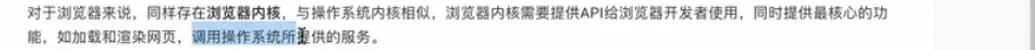 调用操作系统所提供的服务(我们看一个网页都是调用jpu的显卡显示出来的,其实是网页调用浏览器,浏览器调用浏览器内核,浏览器内核有渲染的引擎,最后调用的还是系统调用,文件的调用,gpu的调用,声音的调用以及硬件的调用)