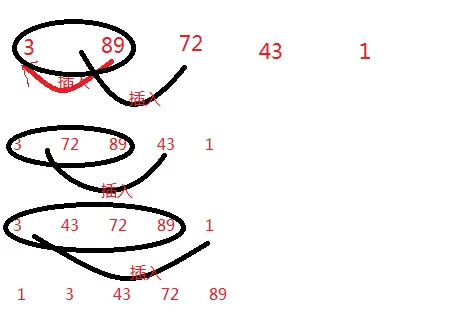 89之后的序列中找比89还小的,然后替换89的位置