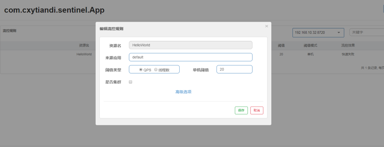接入之后就可以查看这个应用的一些信息了,还可以动态的修改限流的规则: