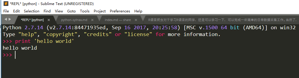 我习惯性用Sublime Text2/3,这个工具很轻量,只有几M大小,可以根据自己需要安装各种插件,我安装了Python插件,能做的事情有: