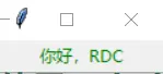 w=tk.Label(root,text='你好,RDC',fg='green').pack()