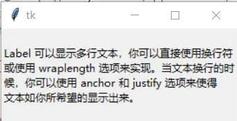 或使用 wraplength 选项来实现。当文本换行的时