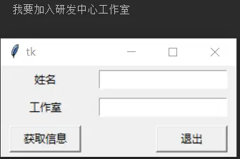 print('{}要加入{}工作室'.format(e1.get(),e2.get()))