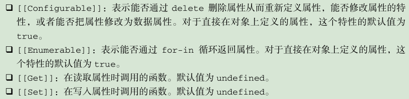 bject.getOwnPropertyDescriptor() 方法,可以取得给定属性的描述符。这个方法接收两个参数:属性所在的对象和要读取其描述符的属性名称。