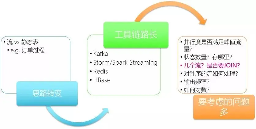 异常处理困难,多个流之间的处理很具有挑战性,现在来说,没有一个非常完美的方案能解决多个流之间的关联关系。离线处理相对比较简单,但是在实时处理的时候,问题就复杂了很多;