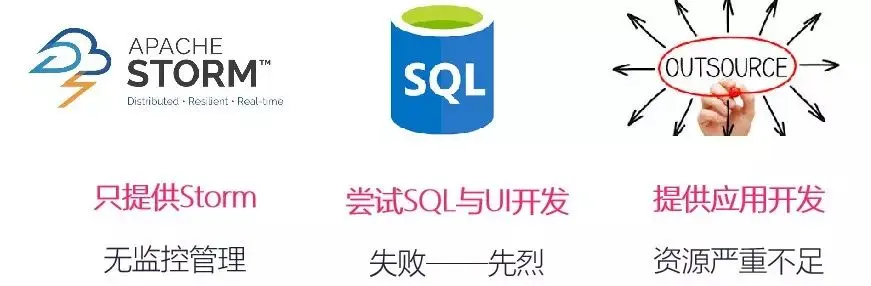 早期也在Storm尝试去做SQL相关的事,那时候想法挺美好,但是因为实时的SQL能完成的事情,包括框架的成熟度比较低的情况下,SQL相互碰撞,步子迈得太大了一点,就死在了沙滩上,我们当时能够真正帮到业务用SQL完成的事情还太少。现在相对而言,实时框架上的SQL(Flink SQL)完善了很多,可以推广使用。