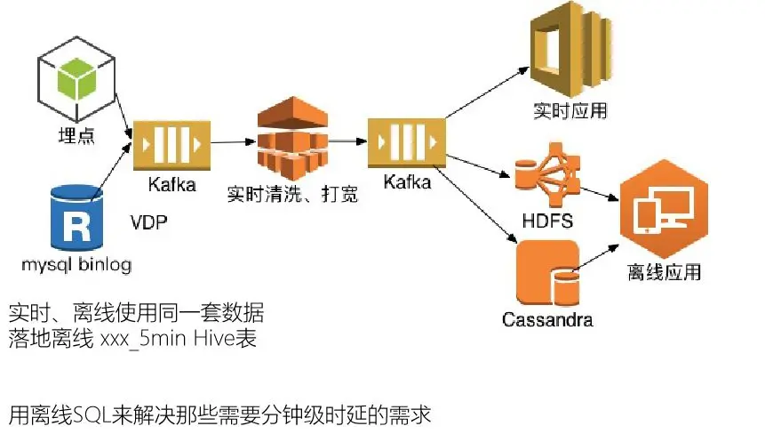 因为对于实时的时间密度大家理解是不一致的,如果在分钟级以上我们会根据这些数据通过准实时或者离线的方案来完成数据的输出。因为离线SQL的开发成本是最低的,可能我直接写SQL就能完成。