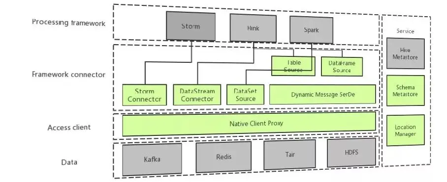 在Spark/Flink/Storm等框架中,以最适合使用的形式提供这些数据源的封装。