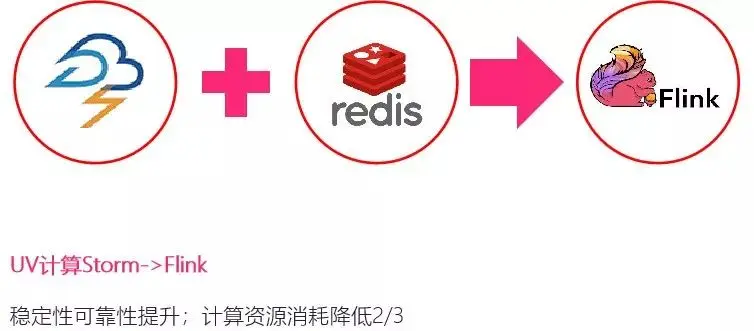 现在完全可以用Flink来做,它的好处是我们有很多的计算任务,通过这样的转化,它计算的稳定性、可靠性得以提升,计算资源消耗降低2/3。