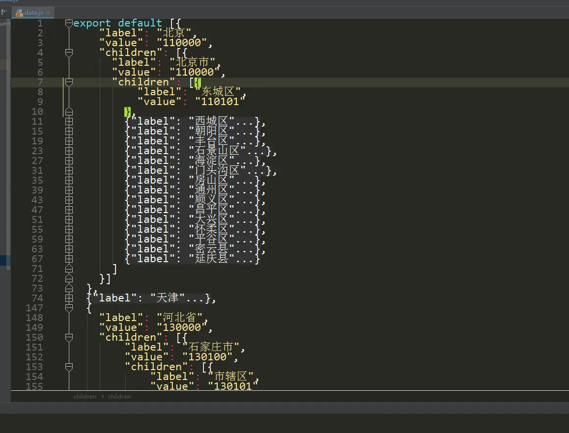 我用两种方式写的省市区判断转换 帝玄_小乌龟 2019-03-22 349 阅读1分钟 先引进datajs 开始写判短 第一种 想用的时候直接引用就行 引用进去写上这个名字就可 还有第二种方法 切记别忘了最后一句 return str