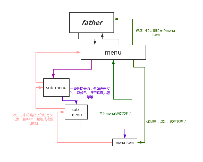 这里menu便会通过menu-item的$emit和$on实现数据的传递
