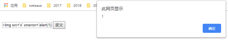 不通过 <script> 标签执行 JavaScript 的方式还是会有被攻击的风险,比如 MDN 中举到的例子: <img src='x' onerror='alert(1)'> ,我们输入后可以看到程序是可以执行的: