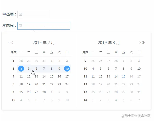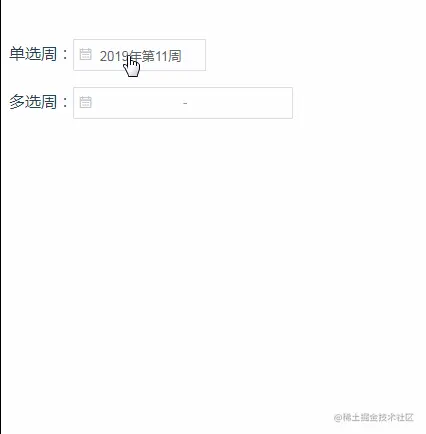 前段时间 由于需要 本人仿照element单选周的风格写了一个单选周和多选周控件