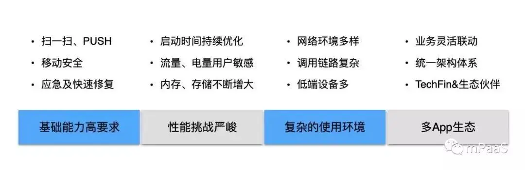 比如支付宝的核心场景扫码支付,有更好的识别率和识别速度,push 就是大家听到的萌妹子语音:“支付宝到账多少多少元”,这就涉及到要求我们的框架怎么做保活,怎么提高推送到达率。