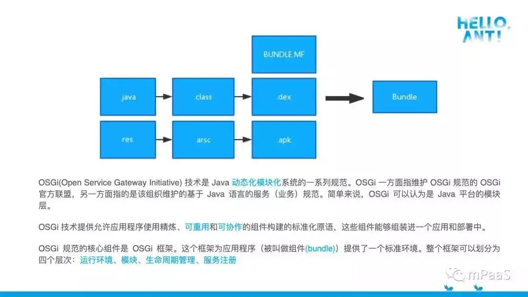 OSGI 是 Java 做动态化模块化的一系列思想规范,支付宝的框架设计也是借鉴了这个思想。