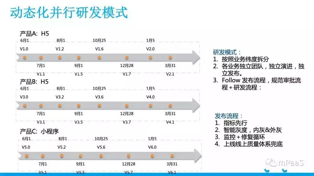 从大版本集中发布到每个小产品迭代开发,每个小产品线维护自己的小版本,可以控制自己的研发和发布流程。