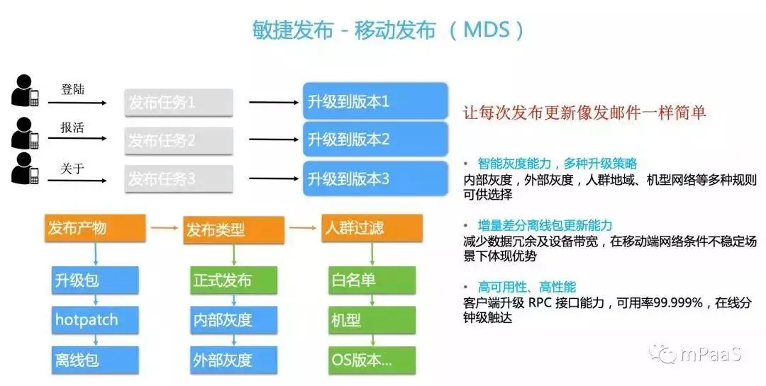 灰度发布:提供多方位的灰度策略:白名单、时间窗、应用版本号、系统版本号、手机型号等。