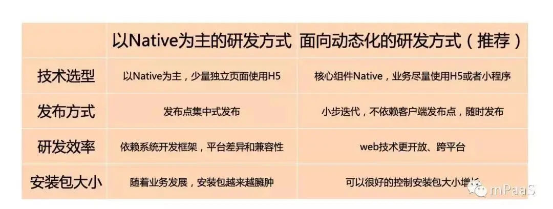 总结来说,技术升级驱动研发方式产生转变,从 Native 为主的研发方式向动态化的研发方式进行转变: