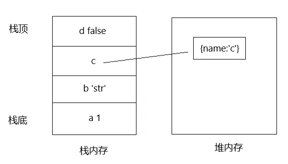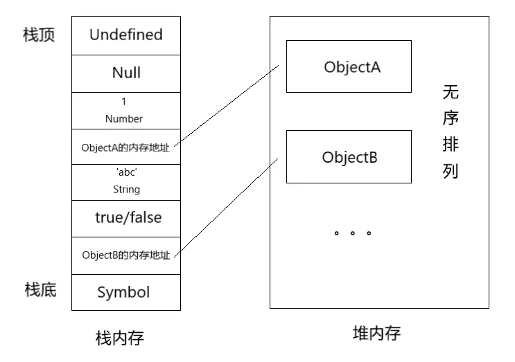 栈存放基本数据类型以及引用数据类型的内存地址