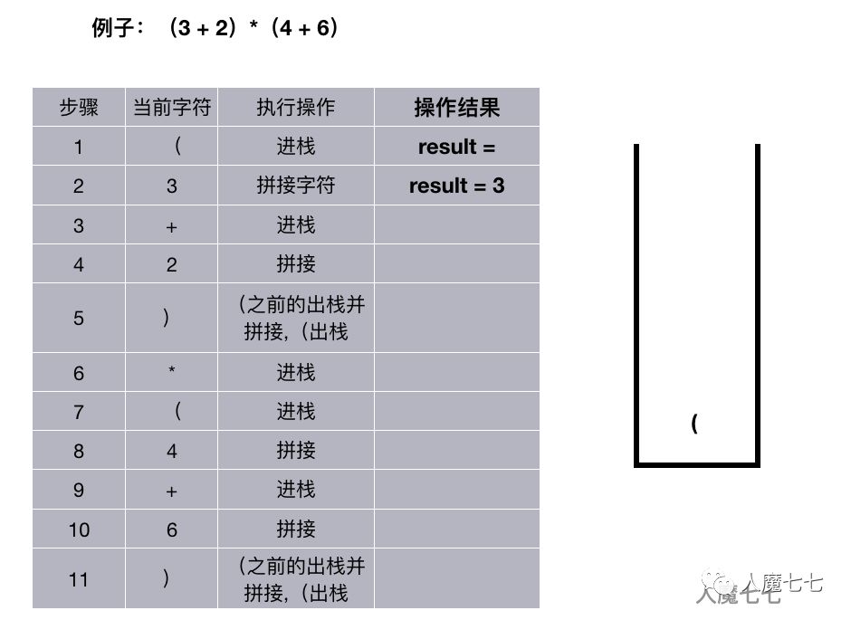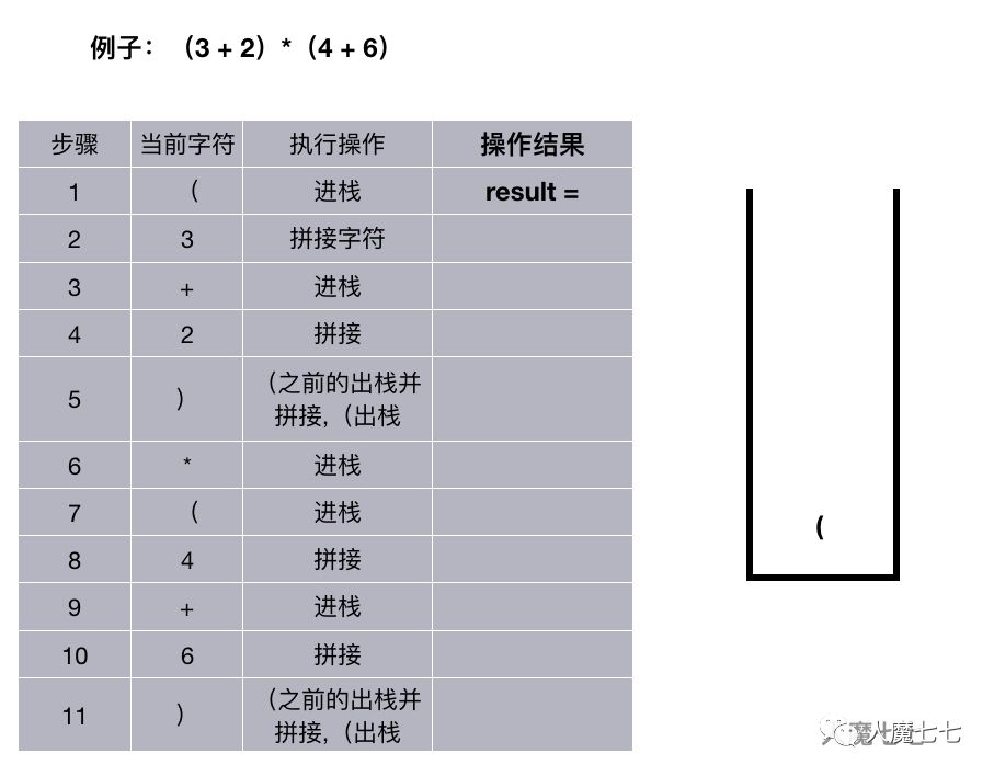 如果读取的字符是‘)’,先把‘(’ 之前的出栈并拼接,然后这个‘(’ 再 出栈