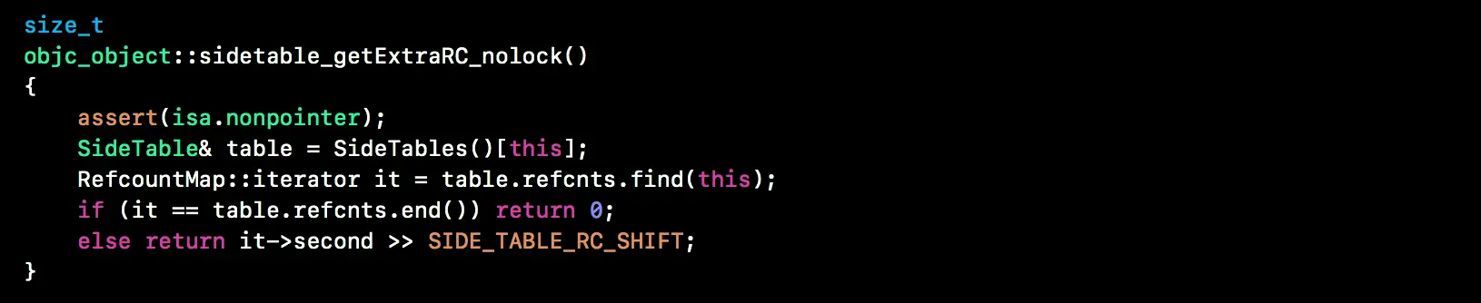 sidetable_getExtraRC_nolock中的代码如下图