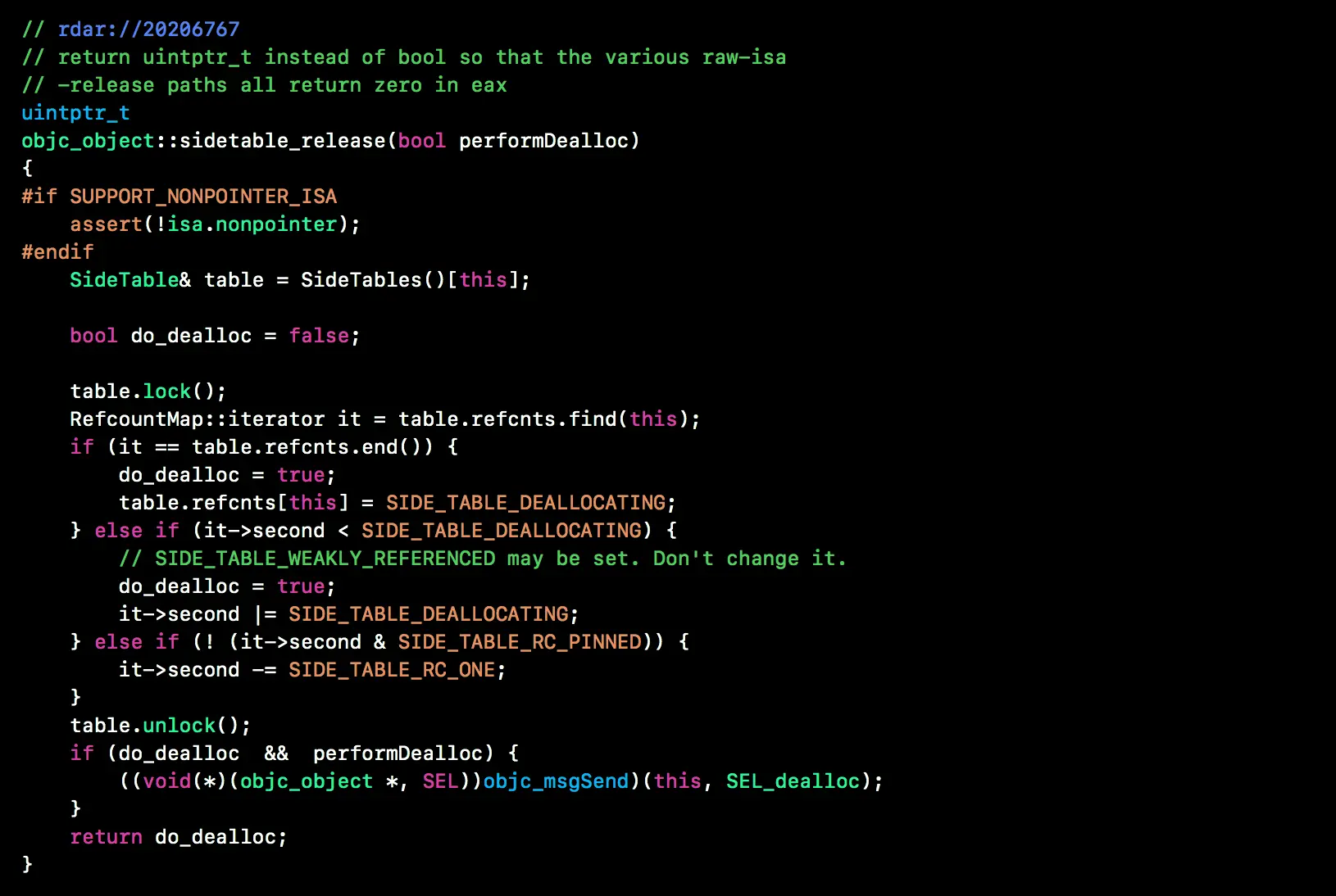 sidetable_retain和sidetable_release函数中, 看到对引用技术的操作