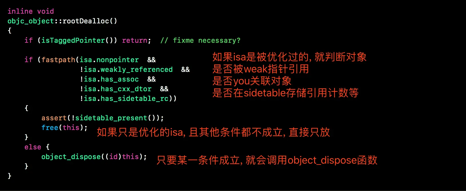 rootDealloc函数, 在这里可以看到两种情况