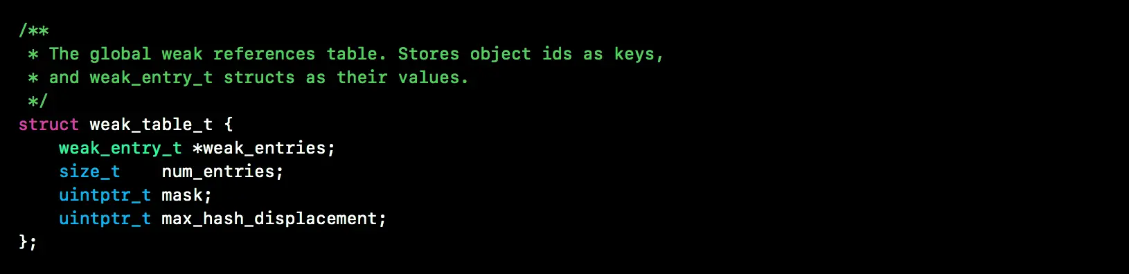 weak_table_t, 如下图, 即weak会被存放到一个全局的散列表中